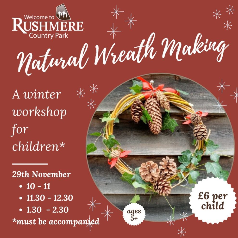 We kick off our festive season at Rushmere with a festive craft activity for children to make their own natural willow wreath which they will decorate using cones from different Rushmere trees and a sprinkling of tiny lights to create something beautiful while becoming a pinecone detective.